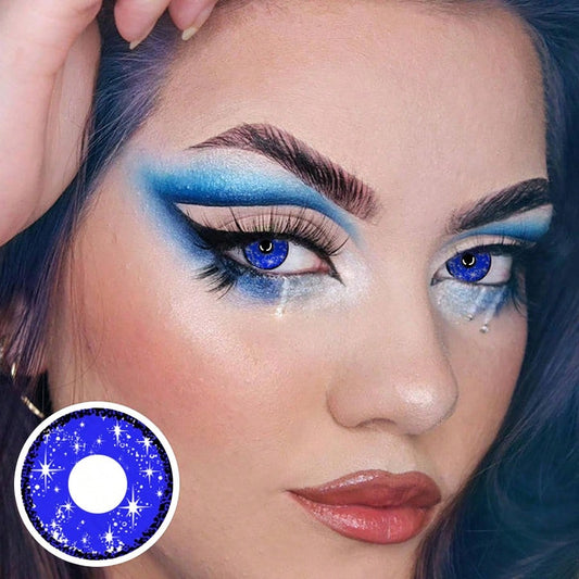 1 Pair Blue Colored Contact Lenses Big Diameter (6 Months Disposable)Cosmetic Contact Lens Purple Disposable Eye Makeup 14.5mm Natural Lenses